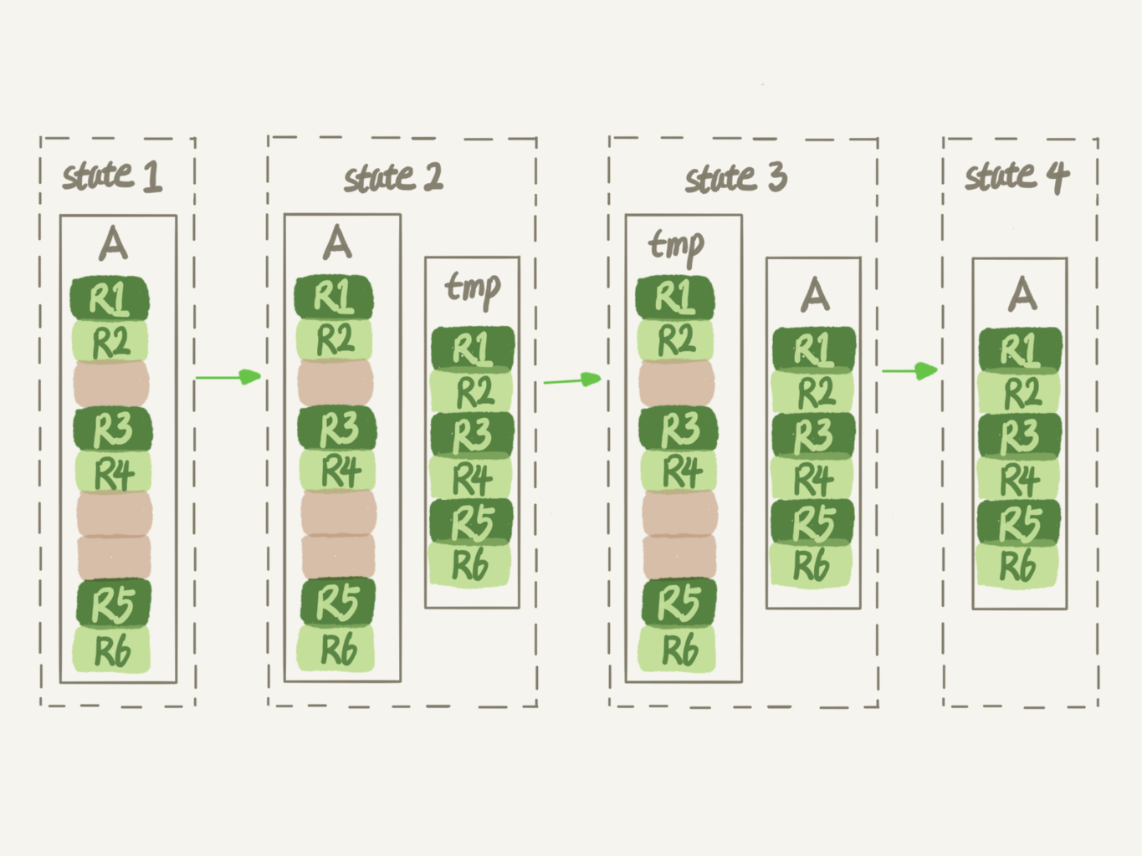 试想一下,如果你现在有一个表A,需要做空间收缩,为了把表中存在的空洞去掉,你可以怎么做呢?