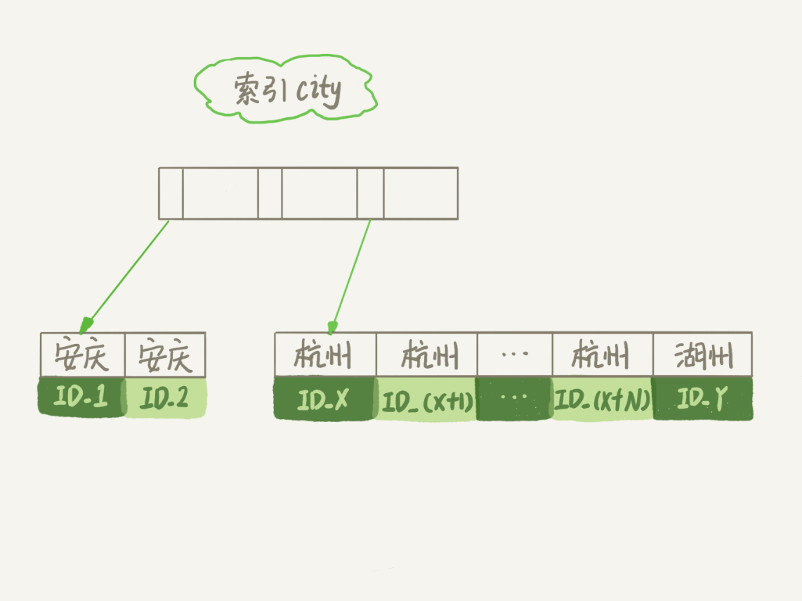 从图中可以看到,满足city='杭州’条件的行,是从ID_X到ID_(X+N)的这些记录。