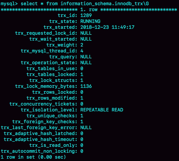 图3 从information_schema.innodb_trx查询事务状态